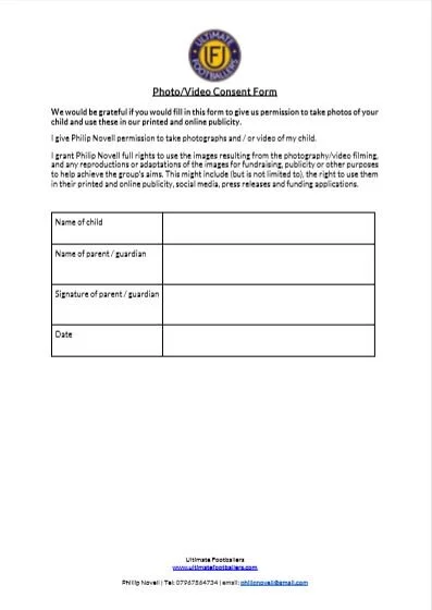 Please note that before 1st session you will be required to fill in a Player registration form and a photo/video consent form (for Ultimate Footballer marketing)
